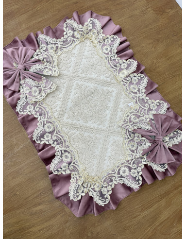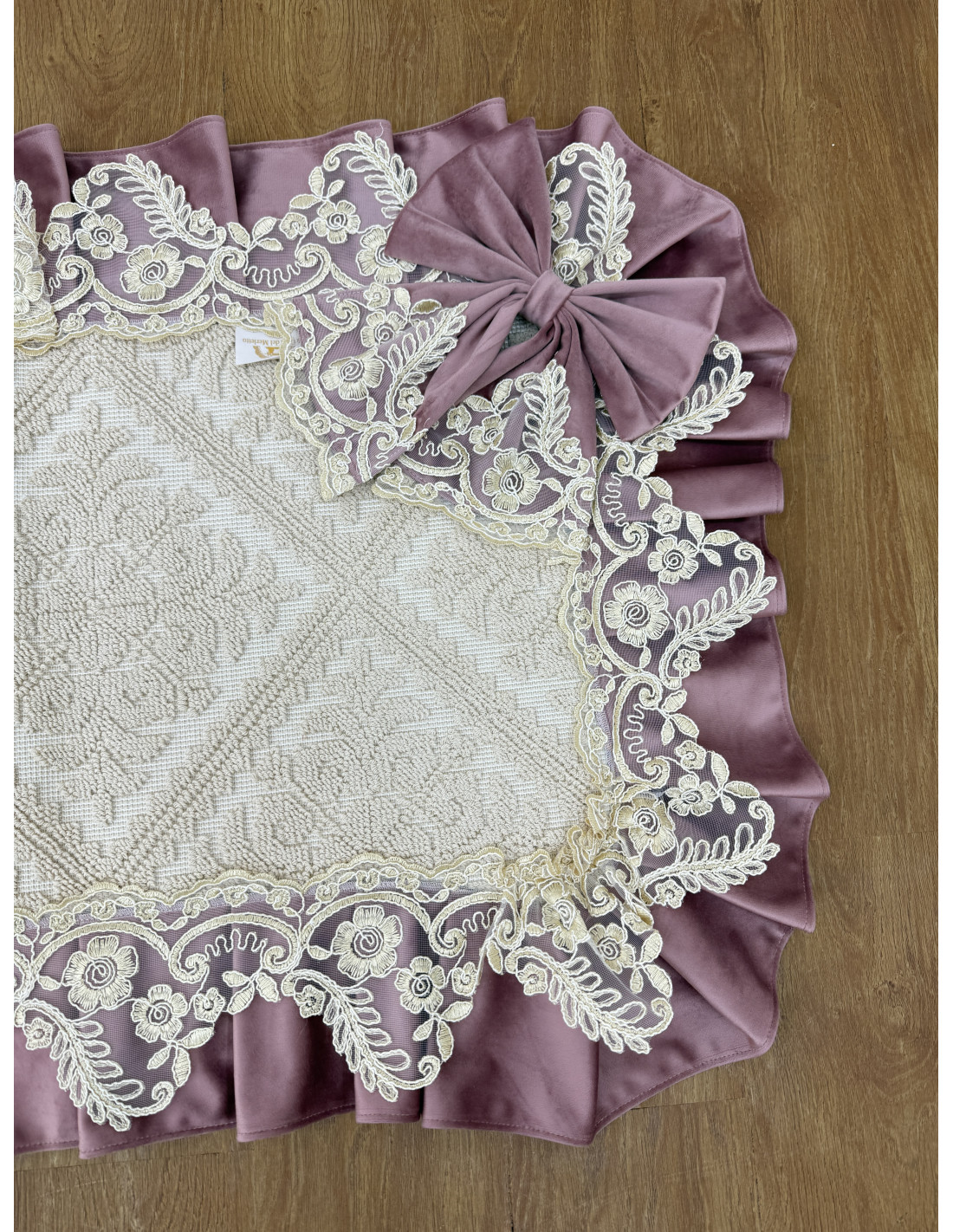Il design è arricchito da un doppio fioccone centrale in velluto e rebrodé, per un tocco romantico e ricercato che dona calore e stile all’ambiente.
