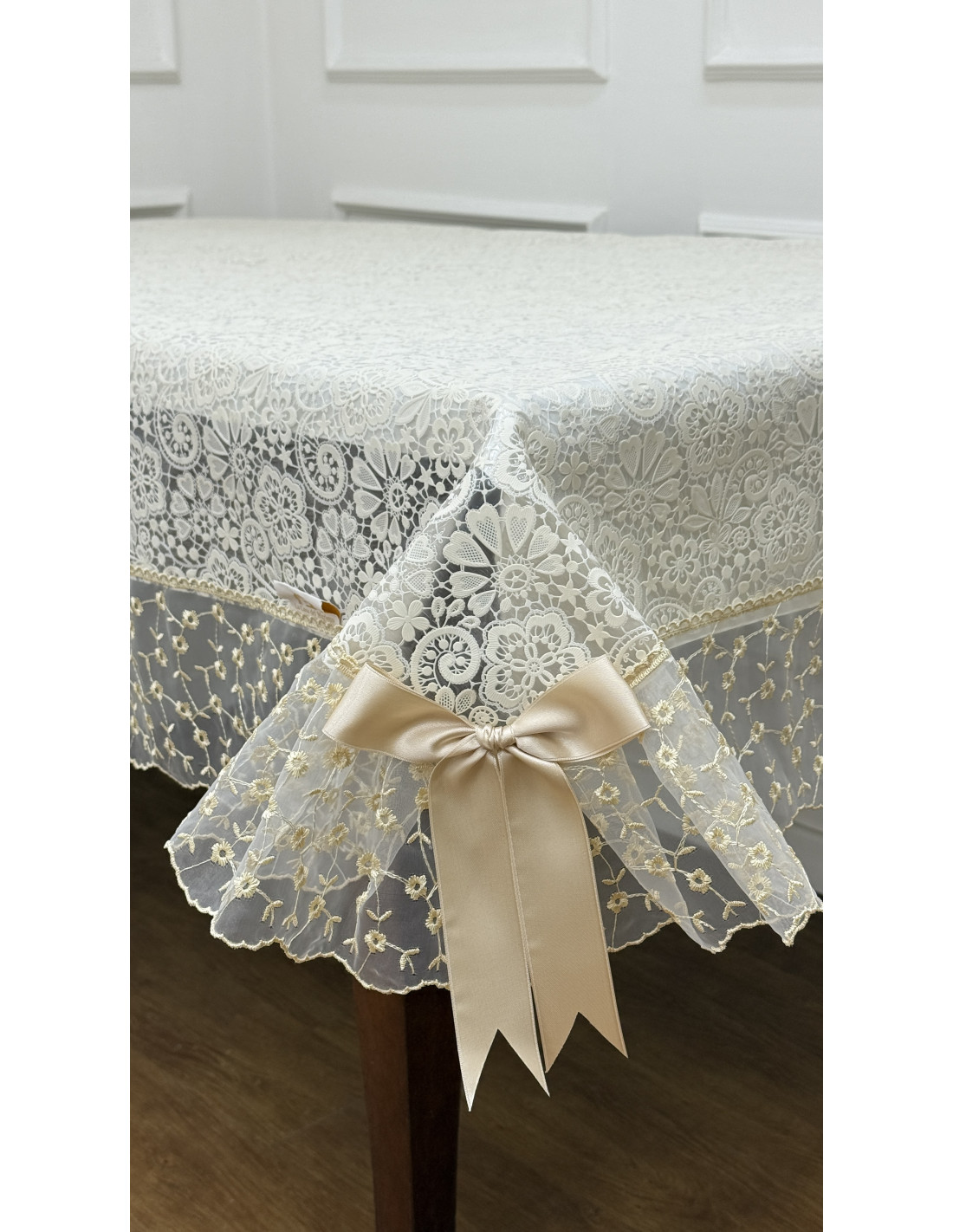 Rifinita con merletto decorativo e impreziosita da fiocchi grandi, dona un tocco romantico e curato a ogni ambiente, perfetta sia per l’uso quotidiano che per le occasioni speciali.