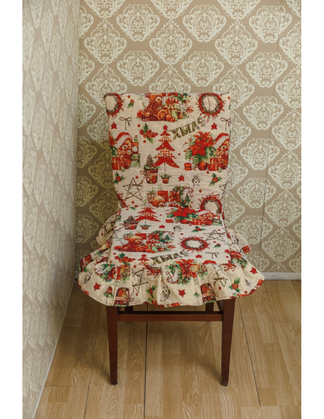 Copri sedia e copri spalliera in stoffa. Il prezzo comprende una spalliera e un cuscino. Il cuscino è realizzato in stoffa con molla per renderla standard, con volà in stoffa, completo di imbottitura. La spalliera è realizzata sempre in stoffa, anch' essa presenta un imbottitura interna e molla ed è arricchita con fiocco grande sulla parte centrale
