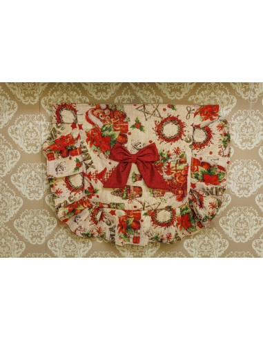 Copri forno in stoffa natalizia laminata con volà .Il prodotto presenta un fiocco centrale rosso Il forno ha una molla dietro che si inserisce all'apertura dello stesso.