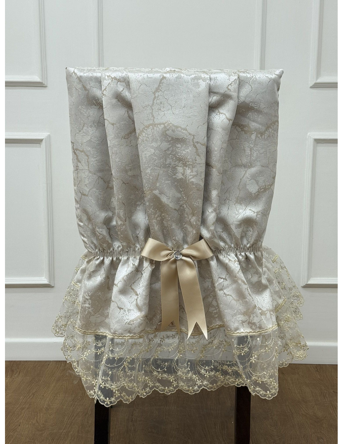 Copri sedia e copri spalliera in stoffa. Il prezzo comprende 6 spalliere e 6 cuscini in PROMO . Il cuscino è realizzato in stoffa effetto marmo avorio con molla per renderla standard, con volà in stoffa e organza, completo di imbottitura. La spalliera è realizzata sempre in stoffa, anch' essa presenta un imbottitura interna e molla ed è arricchita con fiocco grande sulla parte centrale e swarovsky.