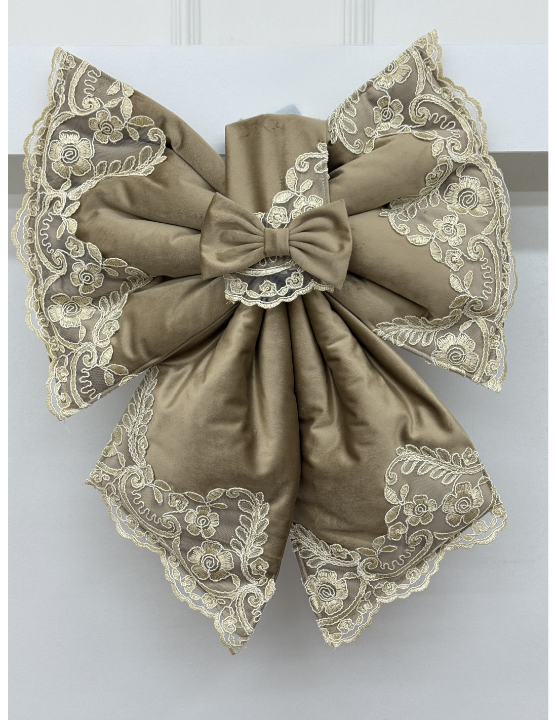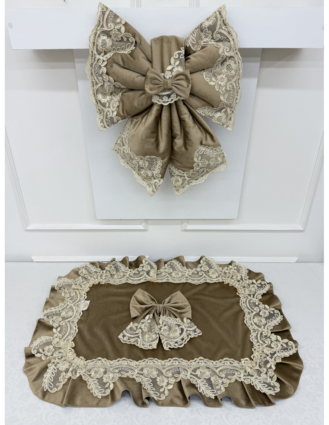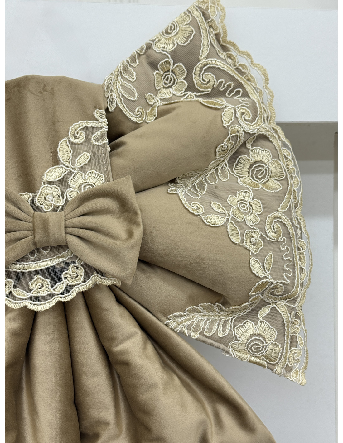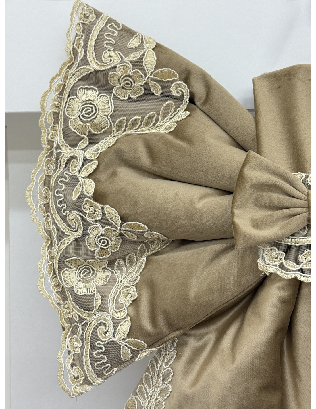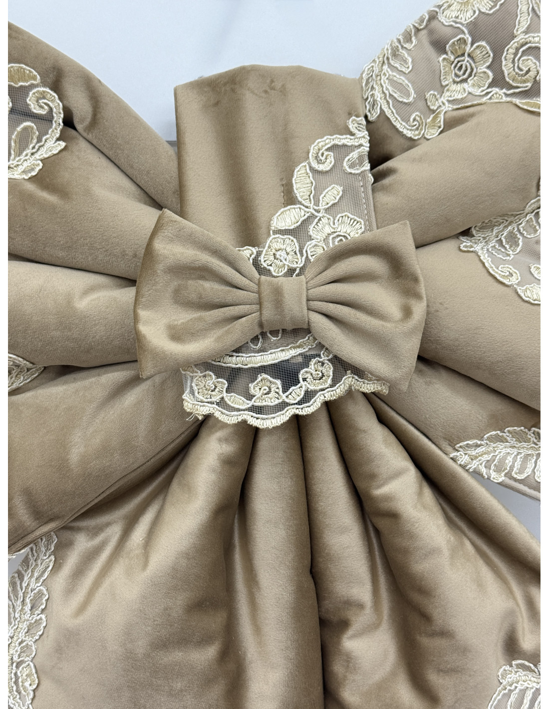 COPRI FORNO FIOCCO VELLUTO TORTORA E REBRODE AVORIO