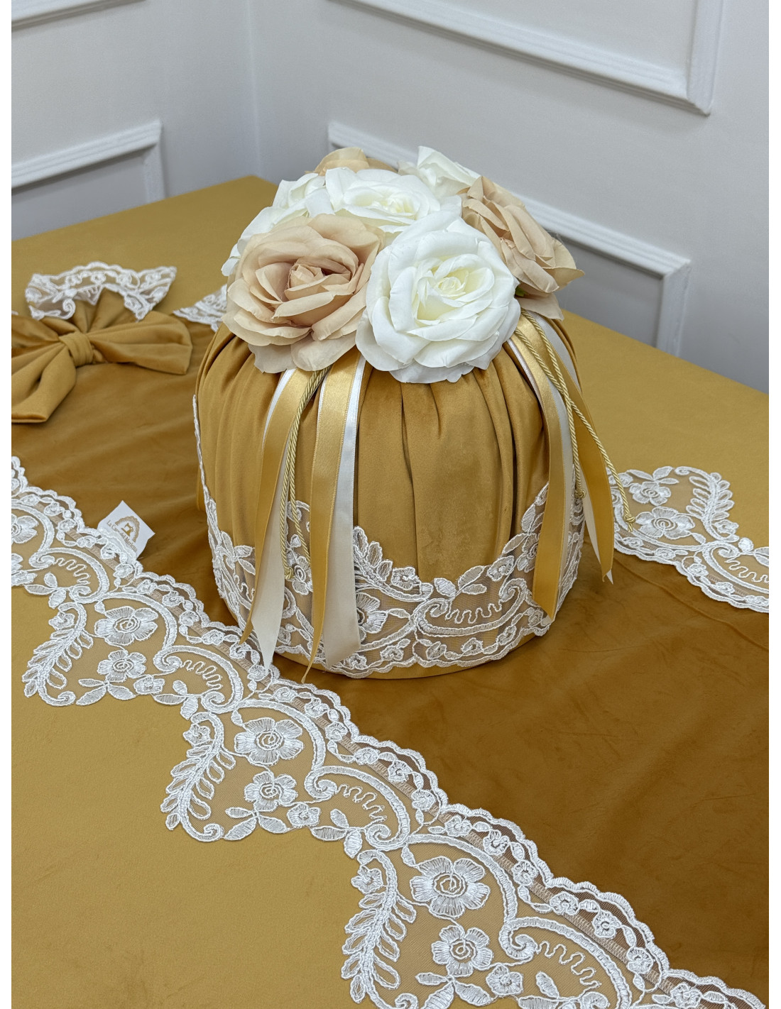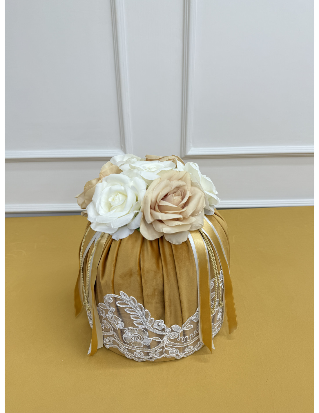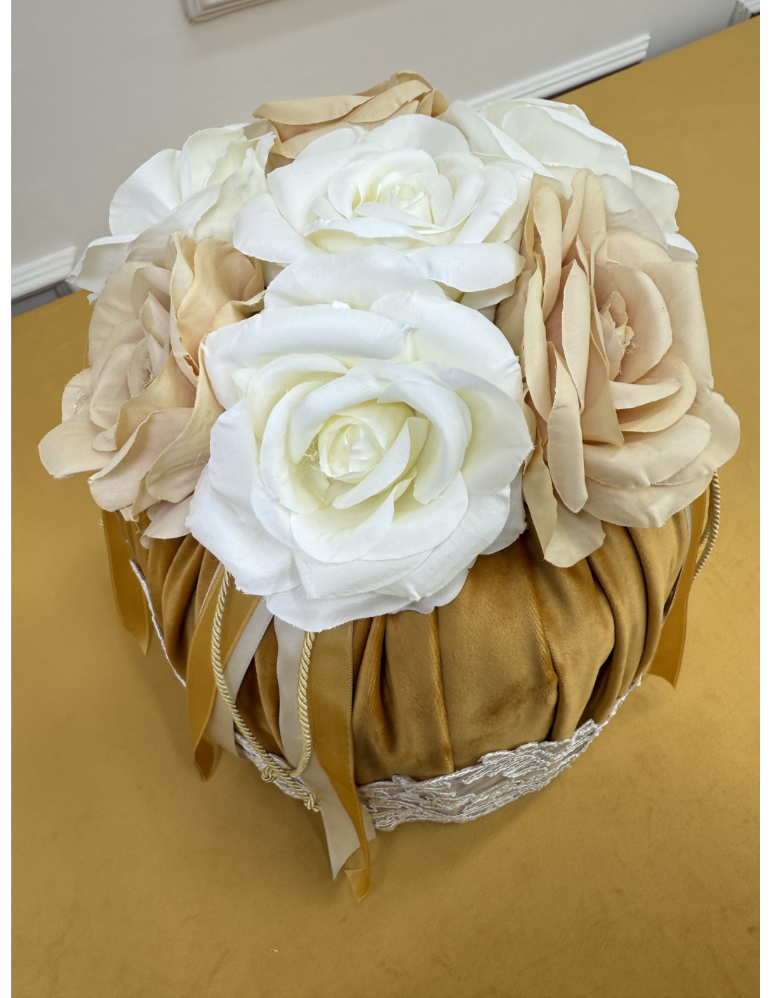 Bon Bon grande in velluto e tulle Swarovski, rifinito con rose finte e applicazioni di raso e cordoncini