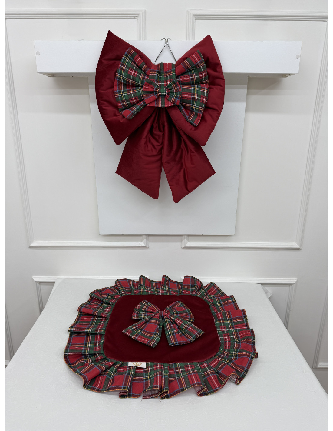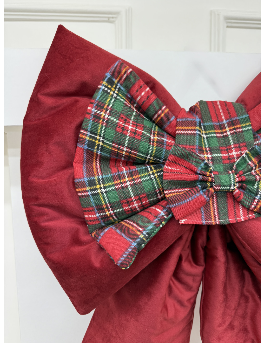 COPRI FORNO FIOCCO VELLUTO ROSSO E TARTAN