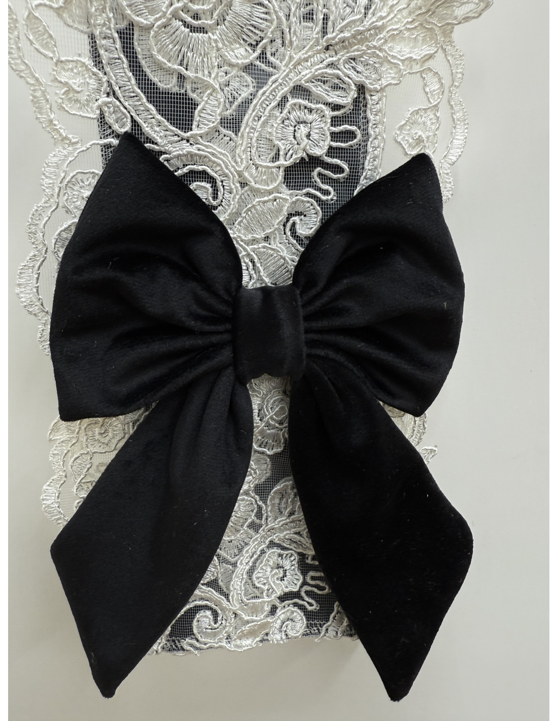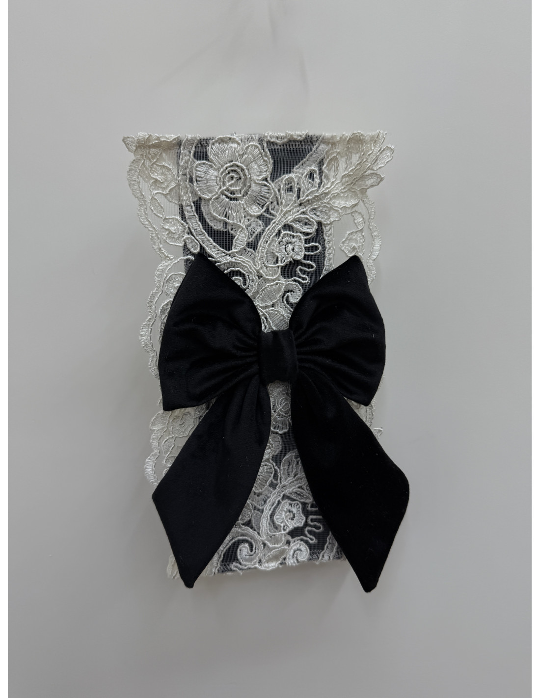 Il design è impreziosito da un fiocco in velluto centrale, che aggiunge un tocco raffinato e artigianale.