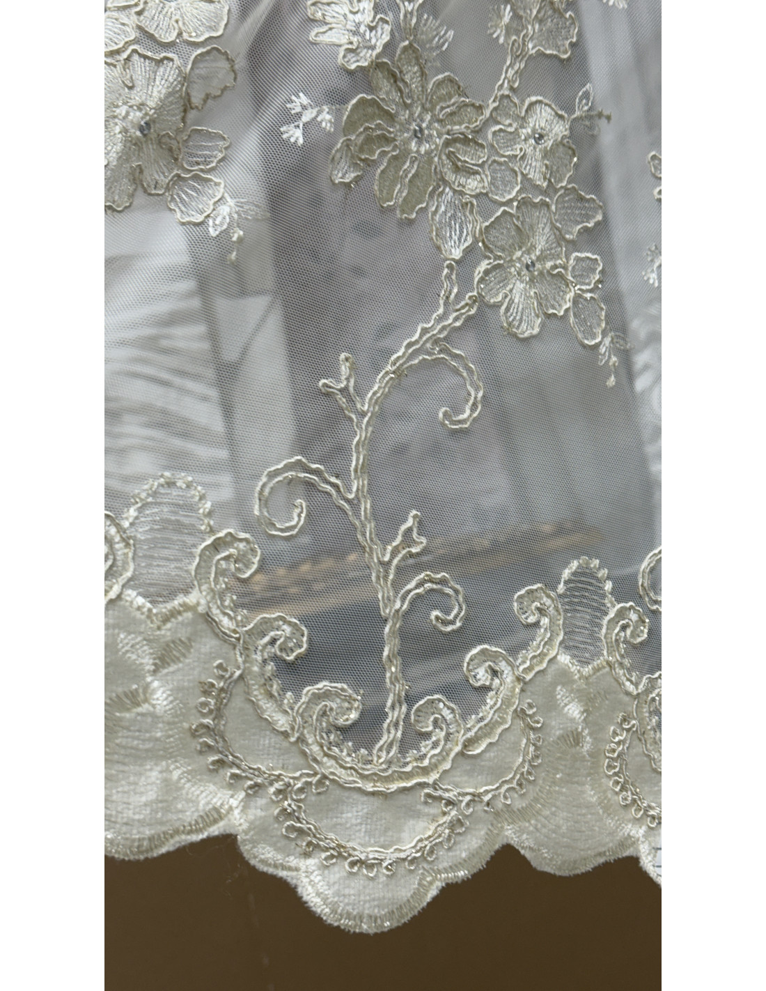 TENDA IN TULLE RICAMATO AVORIO CON SWAROVSKI LUCE
