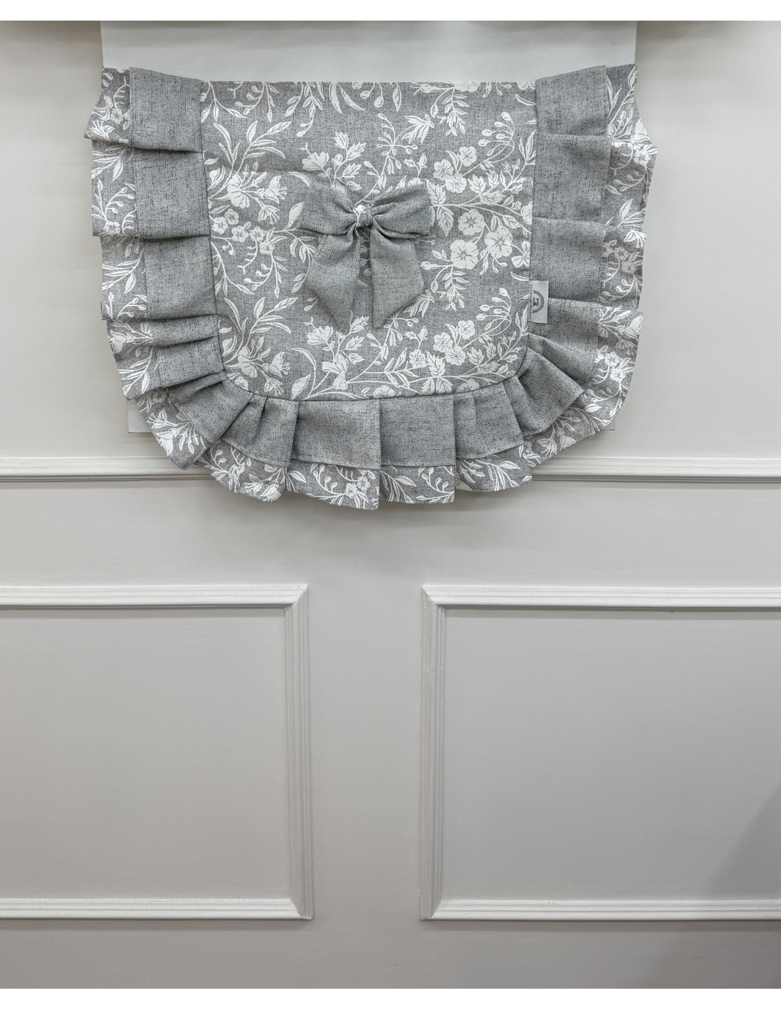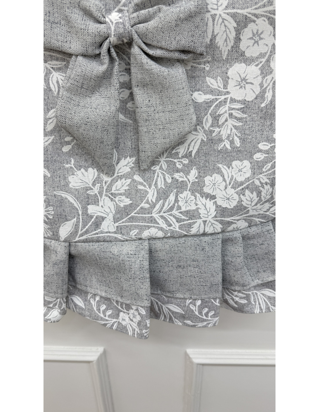 • Decorazione: doppio fiocco in cotone grigio e cotone fiorato
