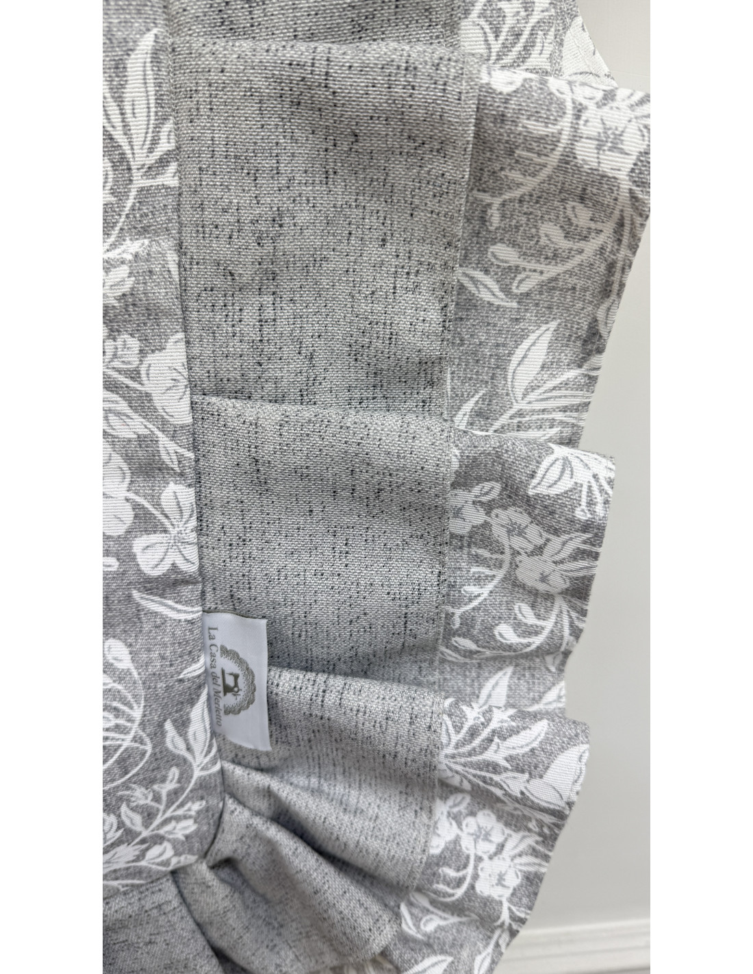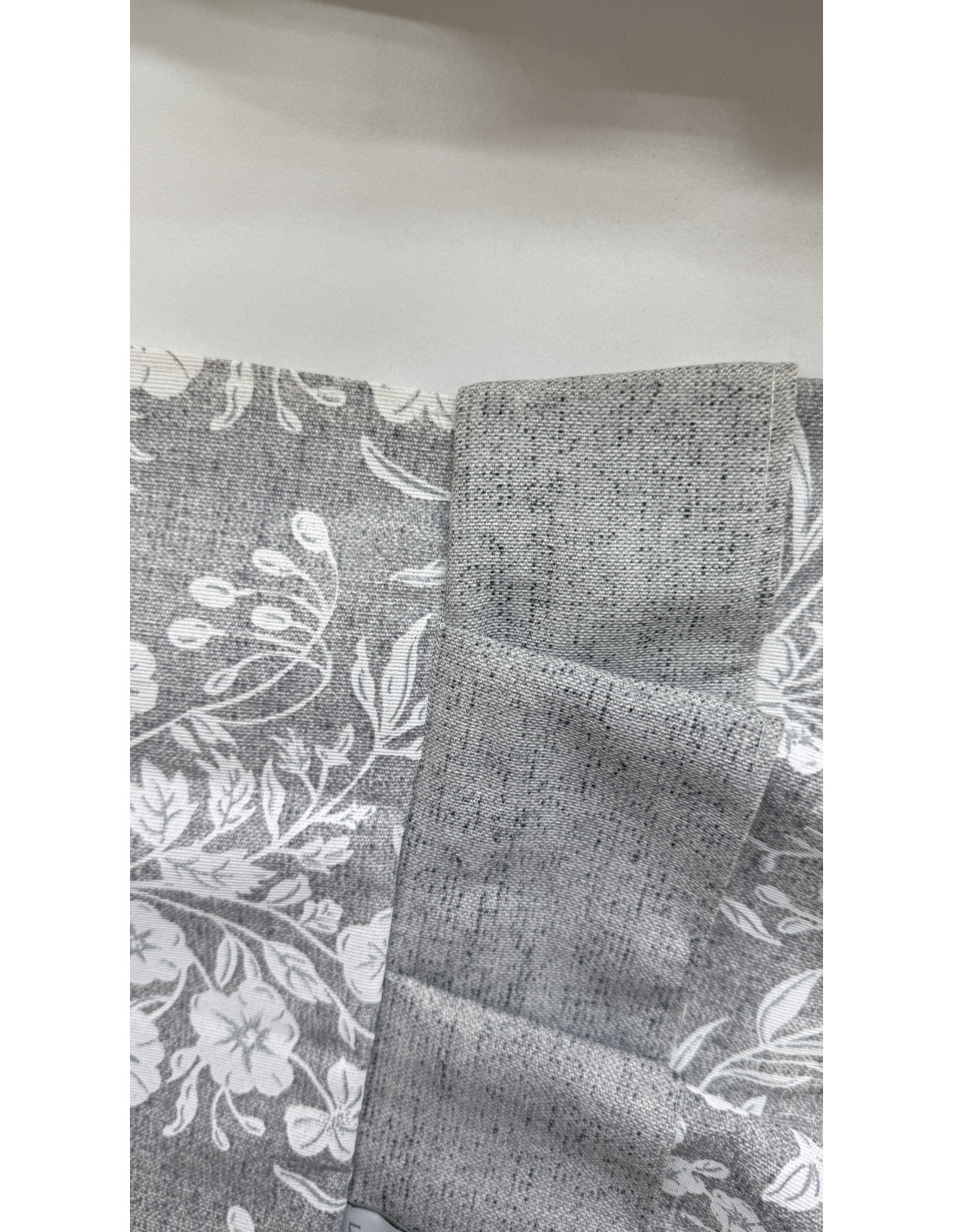 • Tessuto: cotone fiorato grigio e bianco