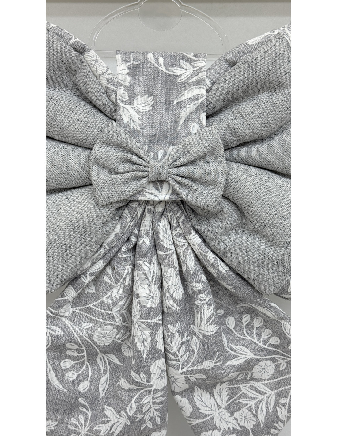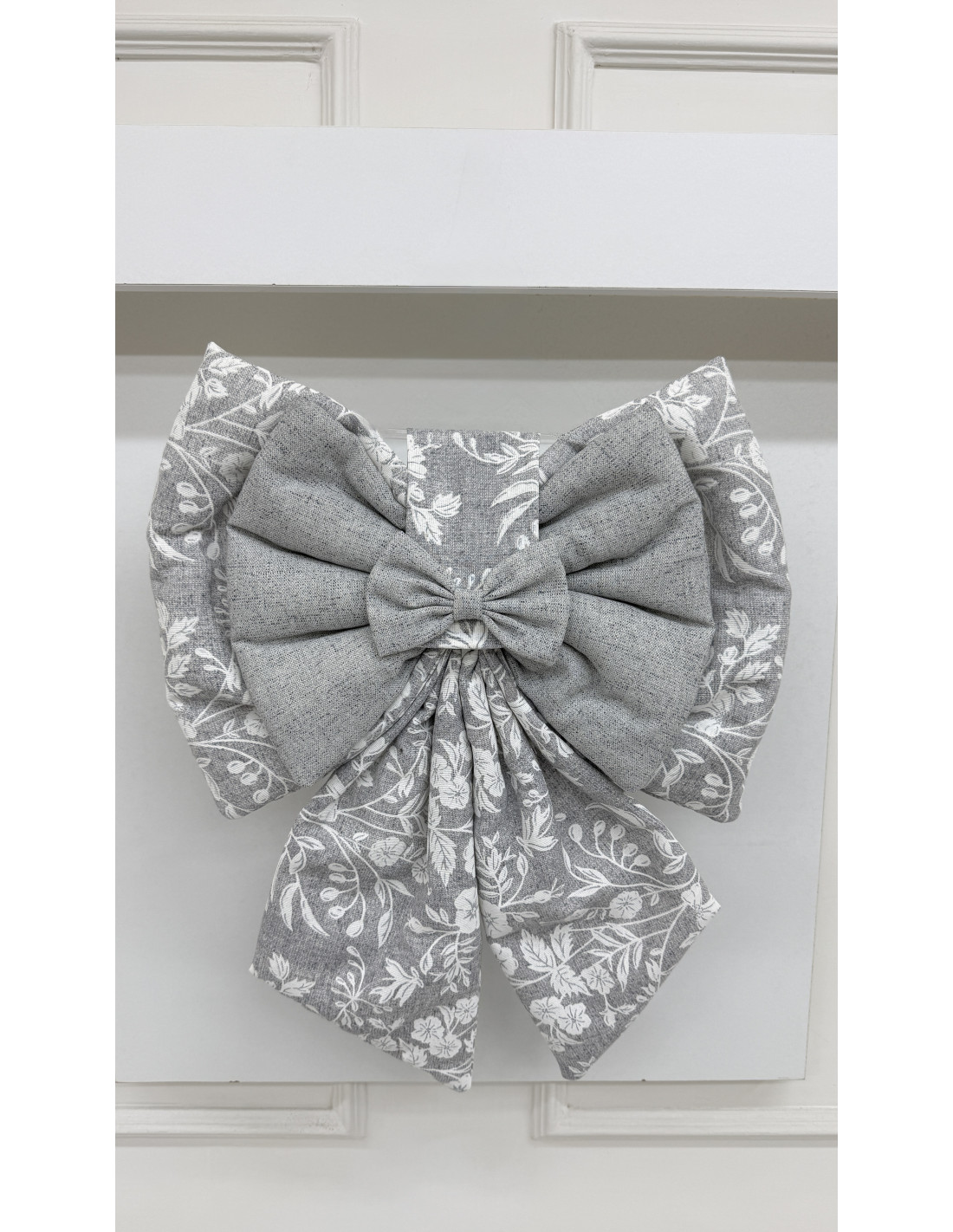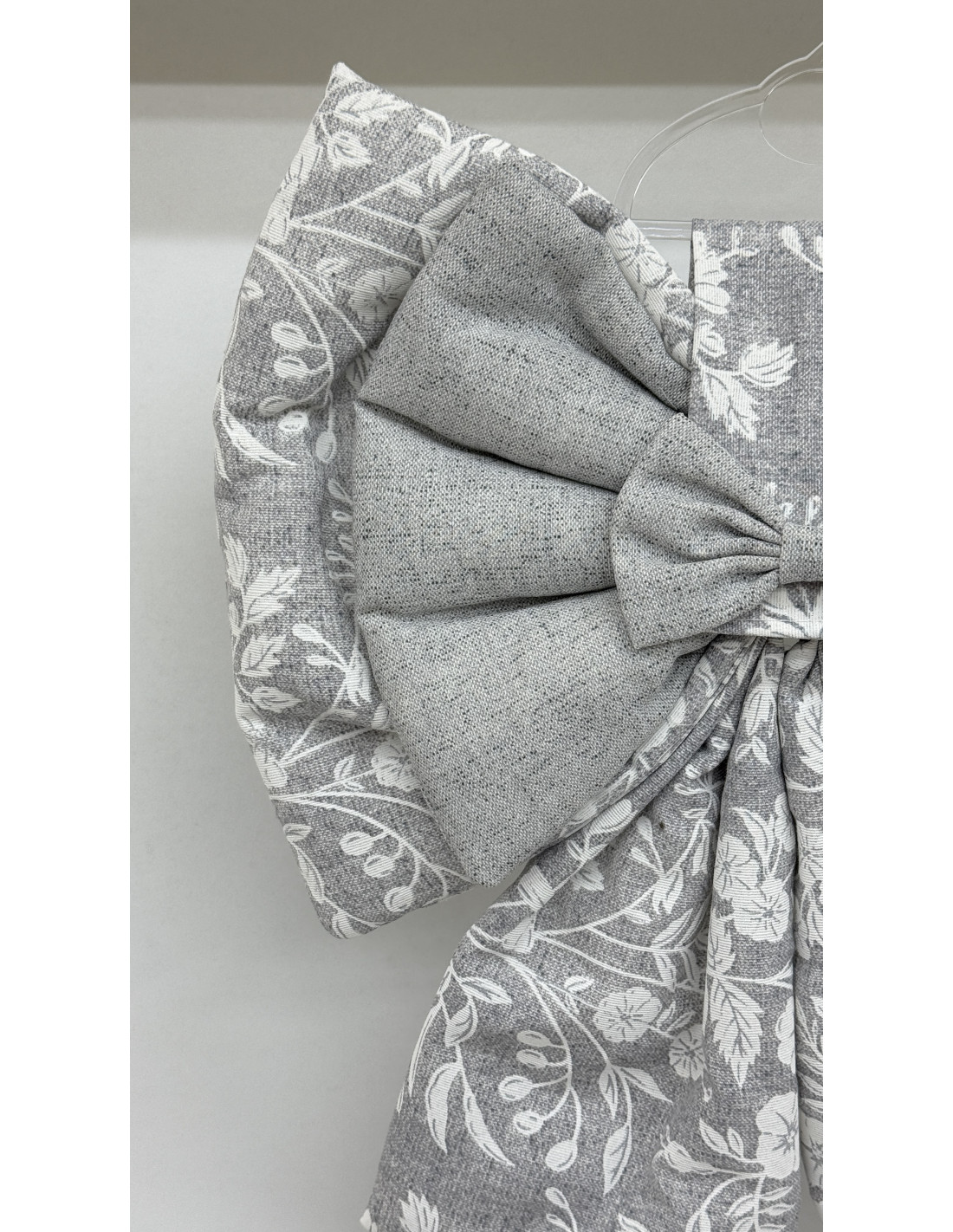 • Decorazione: fiocco in cotone grigio e cotone fiorato