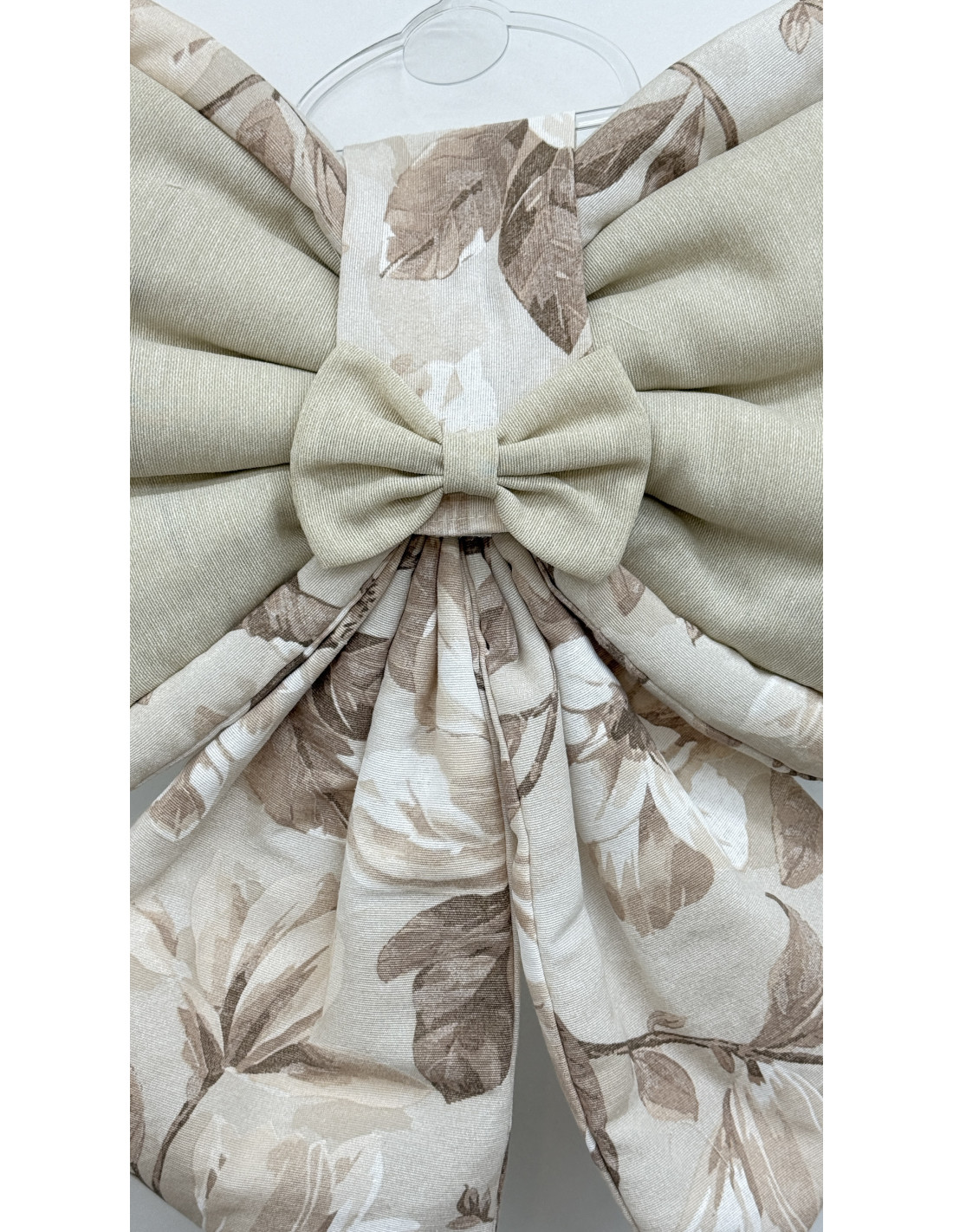 • Decorazione: fiocco in cotone avorio e tessuto fiorato
