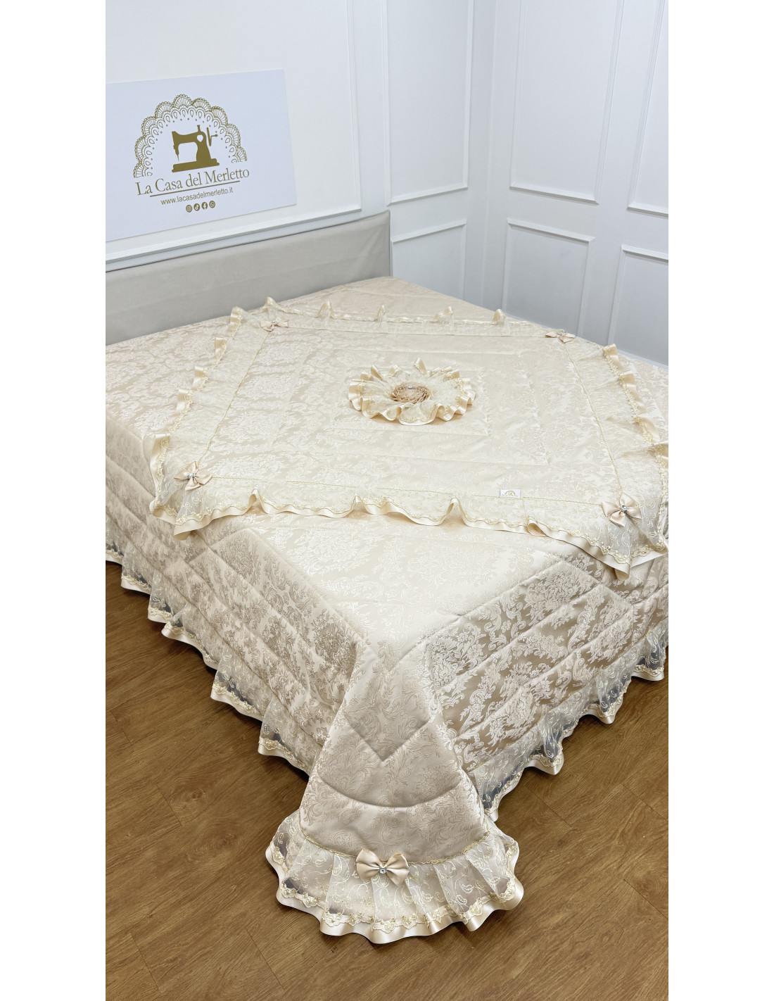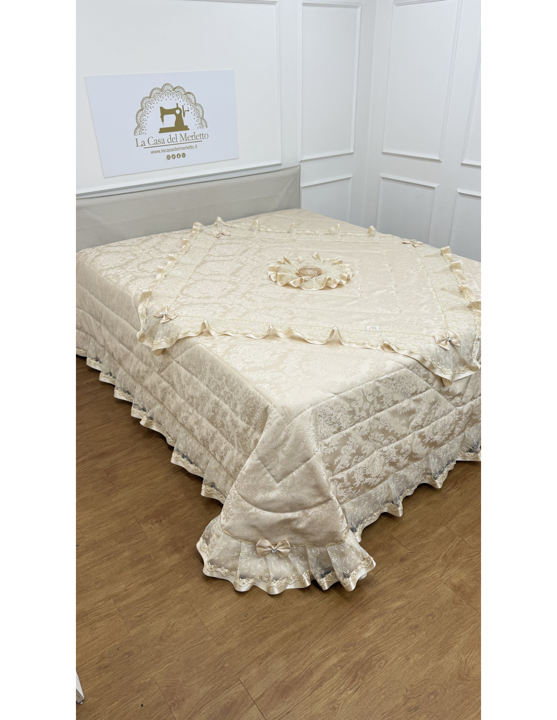 Lasciati avvolgere dalla raffinatezza senza tempo di Eterna Eleganza, il trapuntino pensato per donare luce, armonia e stile alla tua camera da letto.