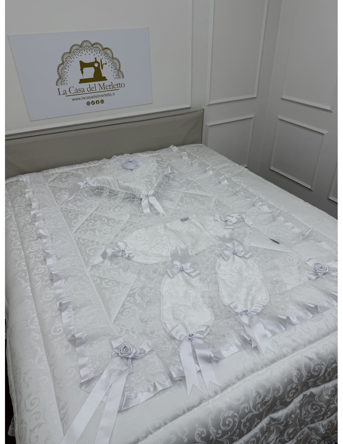 Prodotto firmato LA CASA DEL MERLETTO, realizzato artigianalmente in Italia con cura, amore e attenzione ai dettagli.
