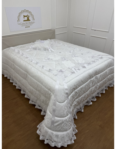 Set matrimoniale in tessuto con doppia balza di organza e raso