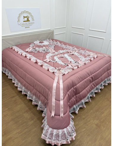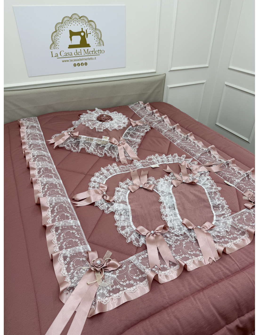 Set matrimoniale in tessuto con doppia balza di organza e raso