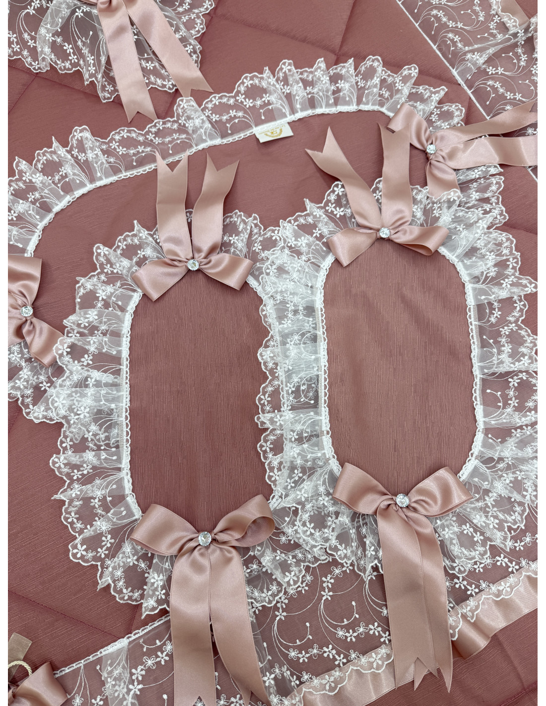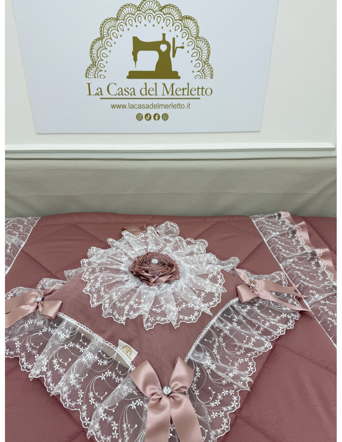 • Cuscino decorativo con merletto, coccarda e fiocchi (misura 40x40 cm)